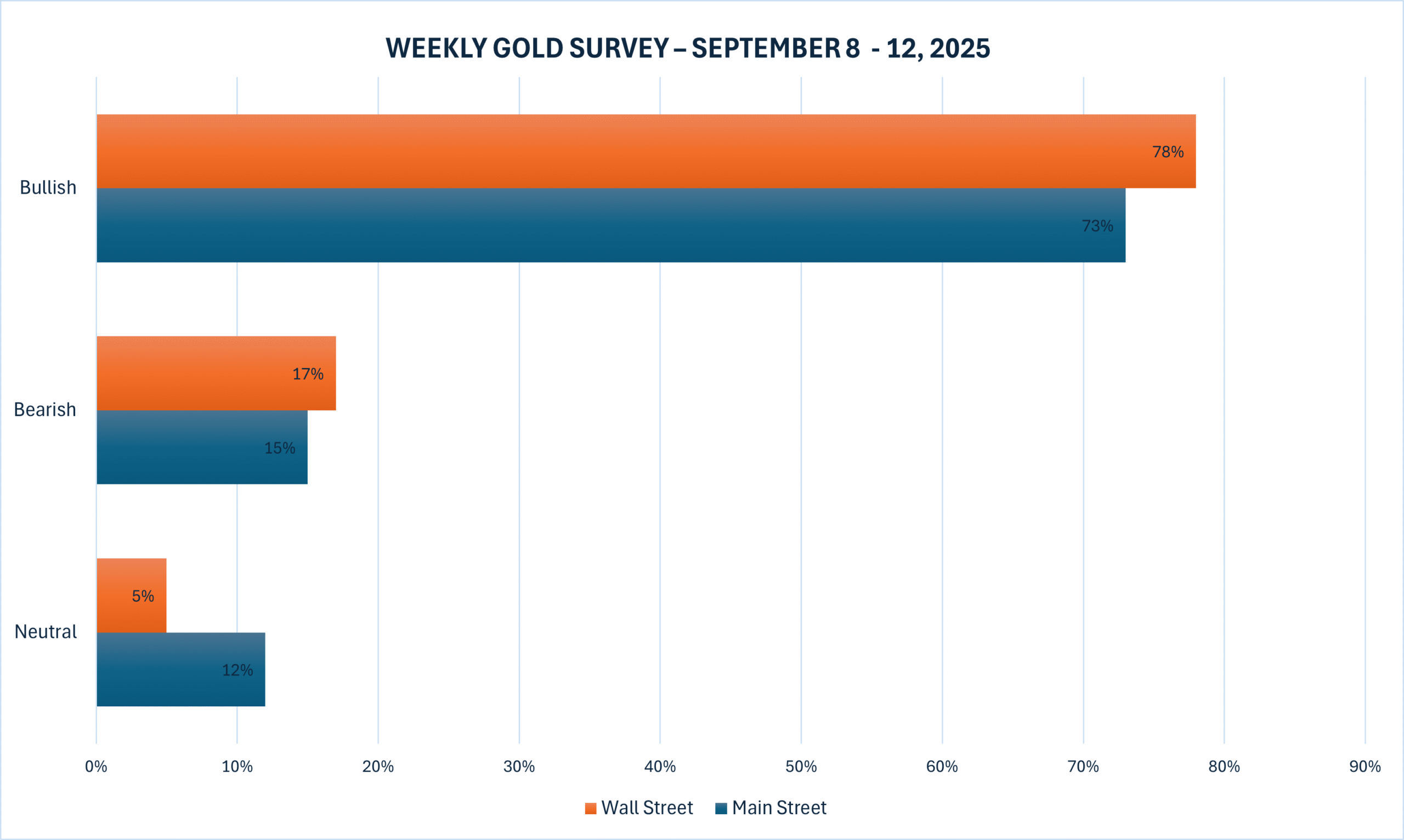 Trong cuộc khảo sát hàng tuần của Kitco News (Weekly Gold Survey), cả nhà đầu tư Phố Wall lẫn Main Street đều thể hiện niềm tin mạnh mẽ: nhóm “bò vàng” (bulls) chiếm ưu thế, bất chấp nhiều lo ngại tiềm ẩn. Dữ liệu này nhấn mạnh rằng, tâm lý thị trường đang nghiêng về hướng lạc quan cho vàng.